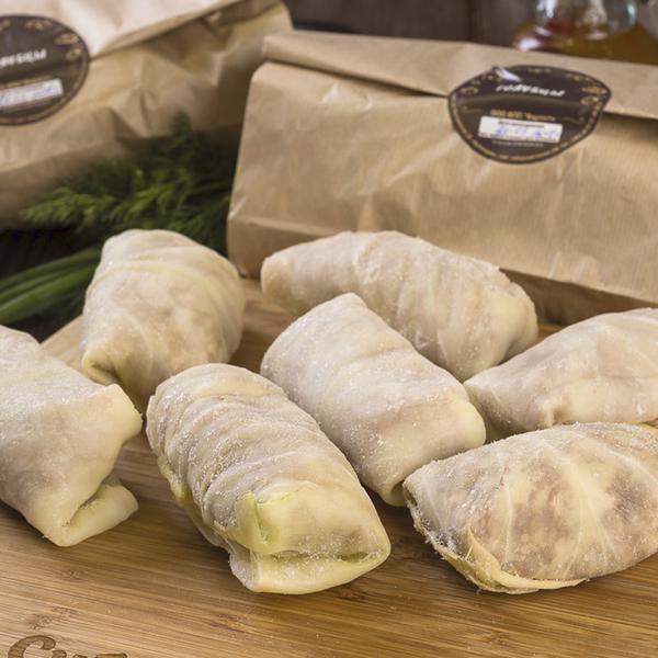 Состав: Капуста, фарш (говядина), рис, лук репчатый, сливочное масло, перец черный, соль.