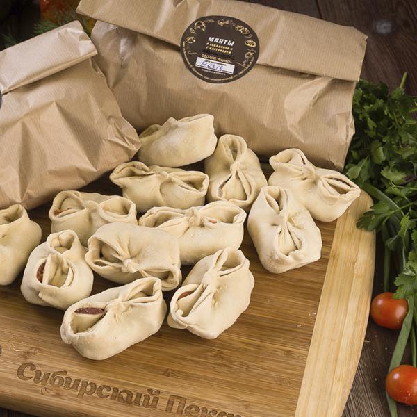 Состав: Тесто пельменное, мясо рубленое (свинина с говядиной или говядина), картофель или тыква кубиками, лук репчатый, соль, перец черный, тмин.